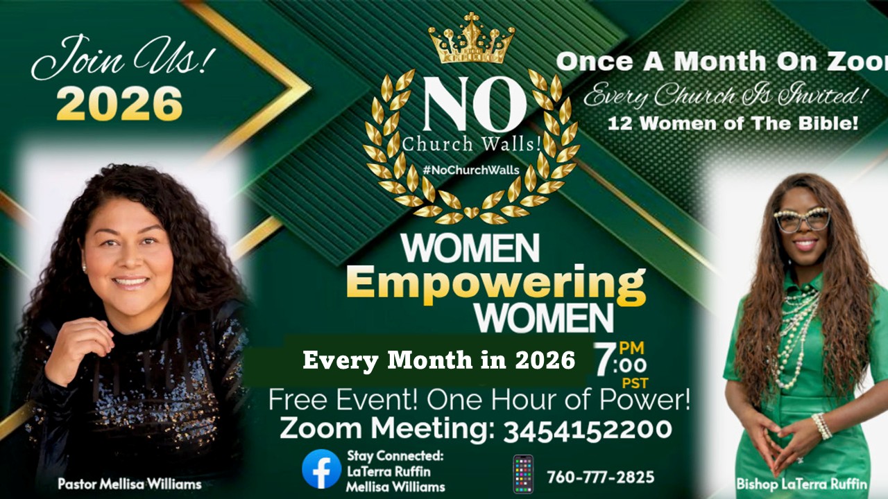 Join women from all over the U.S. as Bishop LaTerra and Pastor Melissa explore "Women of the Bible." This exclusive encounter culminates into a Women's Conference in January (2027). Each 4th Monday of the month, Bishop LaTerra and the "whosoever" (female) at 7:00 pm PST will encounter the intented and timely annointing that speaks to your calling and life!